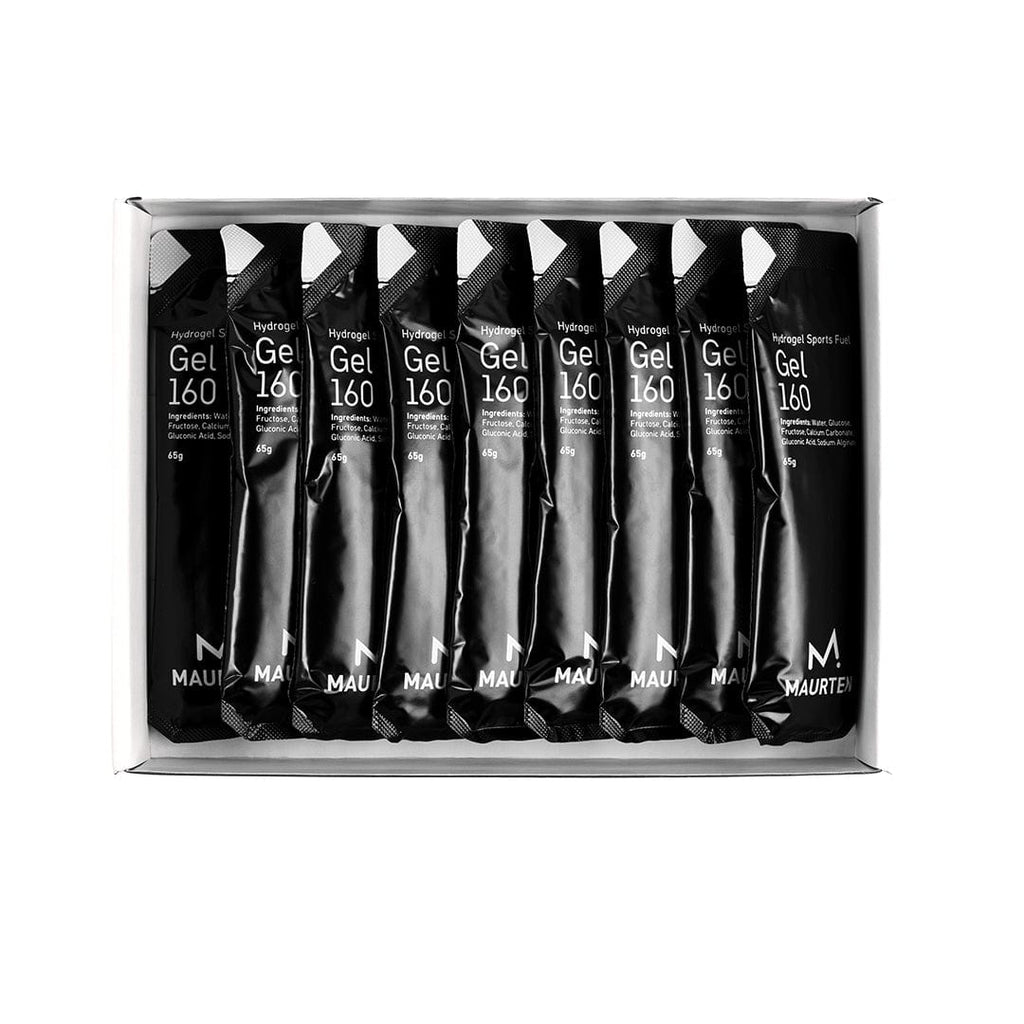 Maurten Gel 160 offre un plus grand coup de pouce : 40 grammes d'hydrates de carbone par gel dans la technologie Hydrogel brevetée de Maurten pour les courses plus longues, les efforts plus importants, et les athlètes qui veulent un maximum d'hydrates de carbone dans chaque paquet.