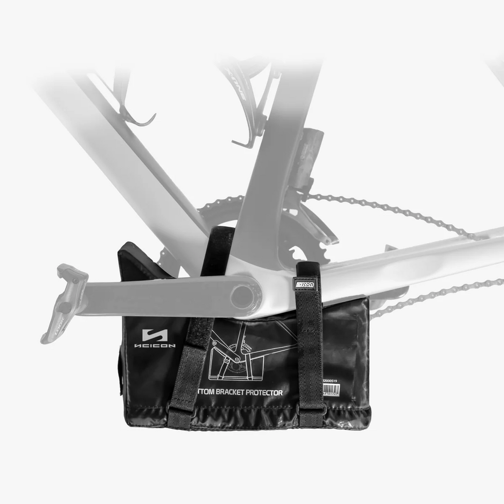 The Scicon Sports Bottom Bracket Protector is a padded accessory designed to safeguard and stabilize your bike during transport inside a soft bike bag. Compatible with road, gravel, triathlon, and MTB bikes, it attaches easily with adjustable Velcro straps for a secure fit. Crafted from durable LinerTex™ tear-resistant nylon and ImpactSafe™ high-density padding, it provides superior impact protection, making it an essential addition for safe and worry-free bike travel.