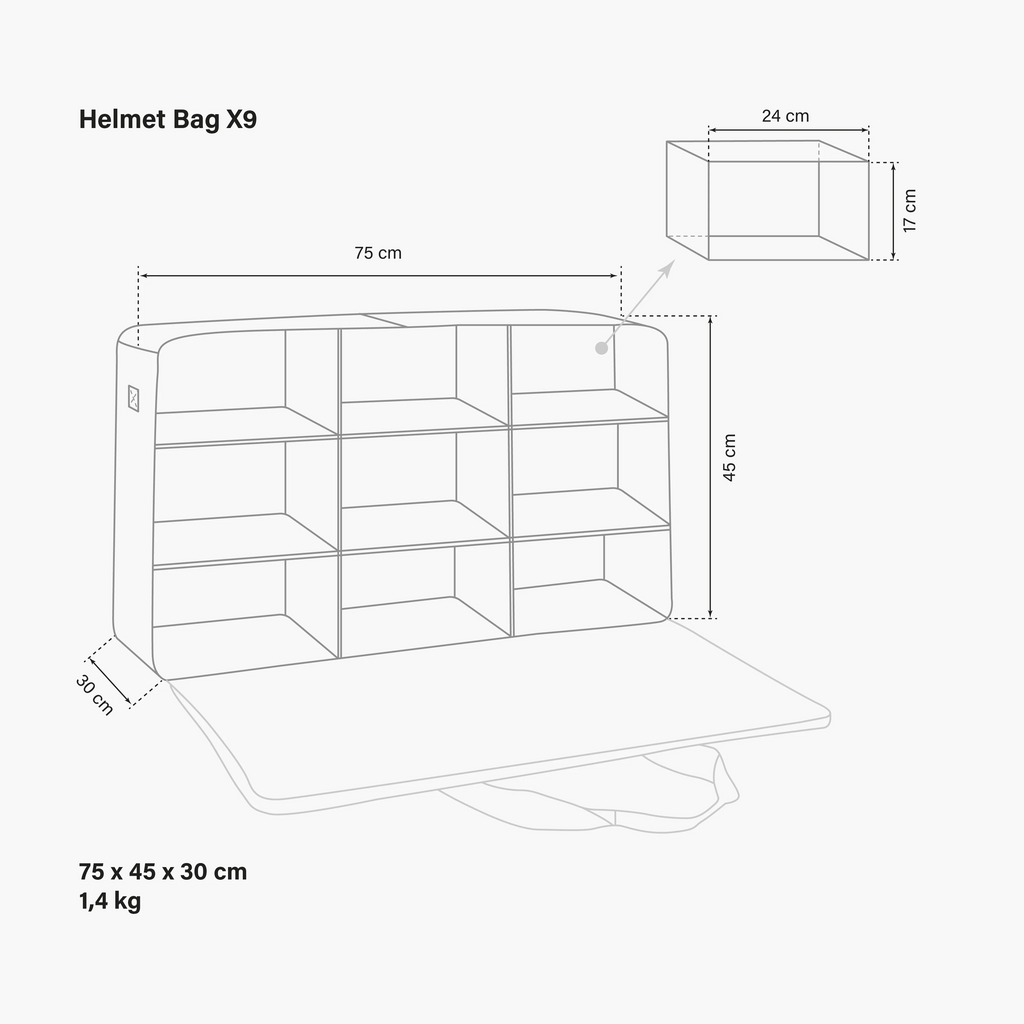 Keep your team organized with the Scicon Sports Helmet Bag 9X, capable of carrying up to nine cycling helmets. Designed in collaboration with professional cycling teams, this heavy-duty, padded bag ensures safe storage and easy transport of your helmets. Made from durable, weather-resistant polyester, it offers long-lasting protection and reliability even in extreme conditions. Perfect for teams and cycling professionals who need secure, convenient, and robust helmet storage on the go.