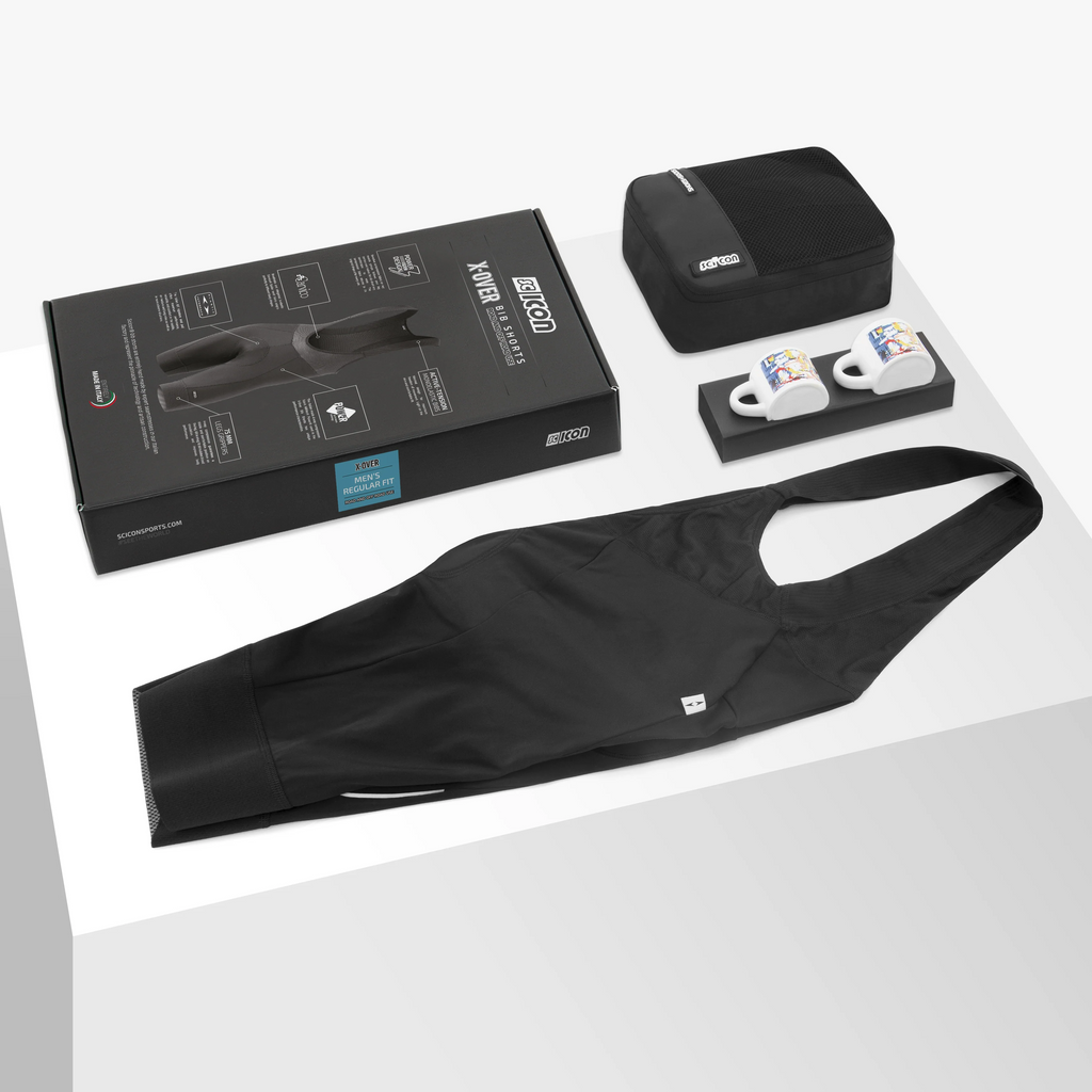 The X‑OVER Cycling Bib Shorts – Men by Scicon Sports are designed to enhance cycling performance and comfort. They feature a seamless, multi-level Italian Elastic Interface (EIT) chamois that provides superior support during long rides. The ergonomic, breathable bi-elastic mesh fabric molds to the body, while 4-way compression improves muscle support and riding efficiency. Equipped with 75 mm leg grippers and active tension mono-elastic straps, these bib shorts ensure a secure fit, making them an essential piece for any cyclist.